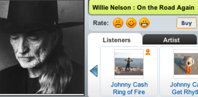 Jango has a really good hook, with a scrolling ribbon of like-minded users at the bottom of the player, along with the songs they are listening to. Click on the song and you can listen to it immediately; click on the user’s image, and you go to that user’s profile page, where you can IM/email them. It’s obvious that Jango has been successful with getting advertising.