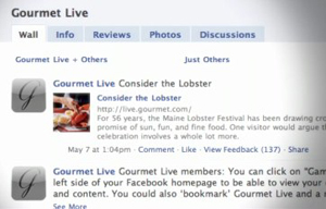 Another unique aspect of Gourmet Live will be its social features, Stock said, which will permit users to share content with their existing networks. Users will sign on using Facebook or Twitter. This social component, according to Stock, is intended to “parallel the social aspects of a meal.”
