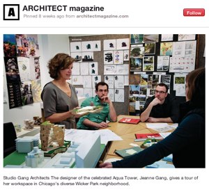 - Architect magazine, the magazine of the American Institute of Architects, has an appealing selection of building photos, movie suggestions and books on its boards, offering design-obsessed Pinterest users another source of inspiration.
