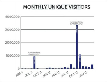 The report examines WNYC’s ups and downs with partnerships and collaborations over the past 2 1/2 years, and its headlong move into digital initiatives and products, including the leadership role it has taken in the silent visual world of data-mapping. Plus, the report also looked at WNYC’s efforts to leverage mobile downloading for both user and membership growth; its particular struggles with metrics; and if and how well the station’s exponentially grown, now fully fused audio-digital newsroom is serving greater New York. There’s also a section on the station’s triumph in civic emergency reporting before, during and after Superstorm Sandy last fall.