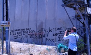 Christopher Essner, a 2013 graduate of Rutgers University, photographs the separation wall that divides Jerusalem.