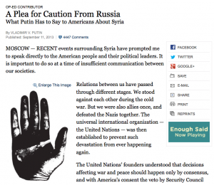 Readers were outraged, politicians postured, and commentators and media critics analyzed Putin’s piece and annotated and fact checked it to death. All told, it was a collective exercise in rhetorical analysis that likely warmed the hearts of freshman composition professors everywhere.