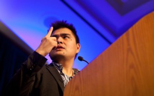 Caption: Jose Antonio Vargas (@joseiswriting) speaks to the ONA 2012 attendees about covering undocumented immigrants. Credit: Heikki Pölönen, ONA Student Newsroom