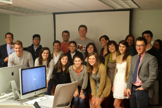 Five students assigned to Investigative Reporters and Editors helped create new audio and video products for the news organization. Photo by Jim Flink.